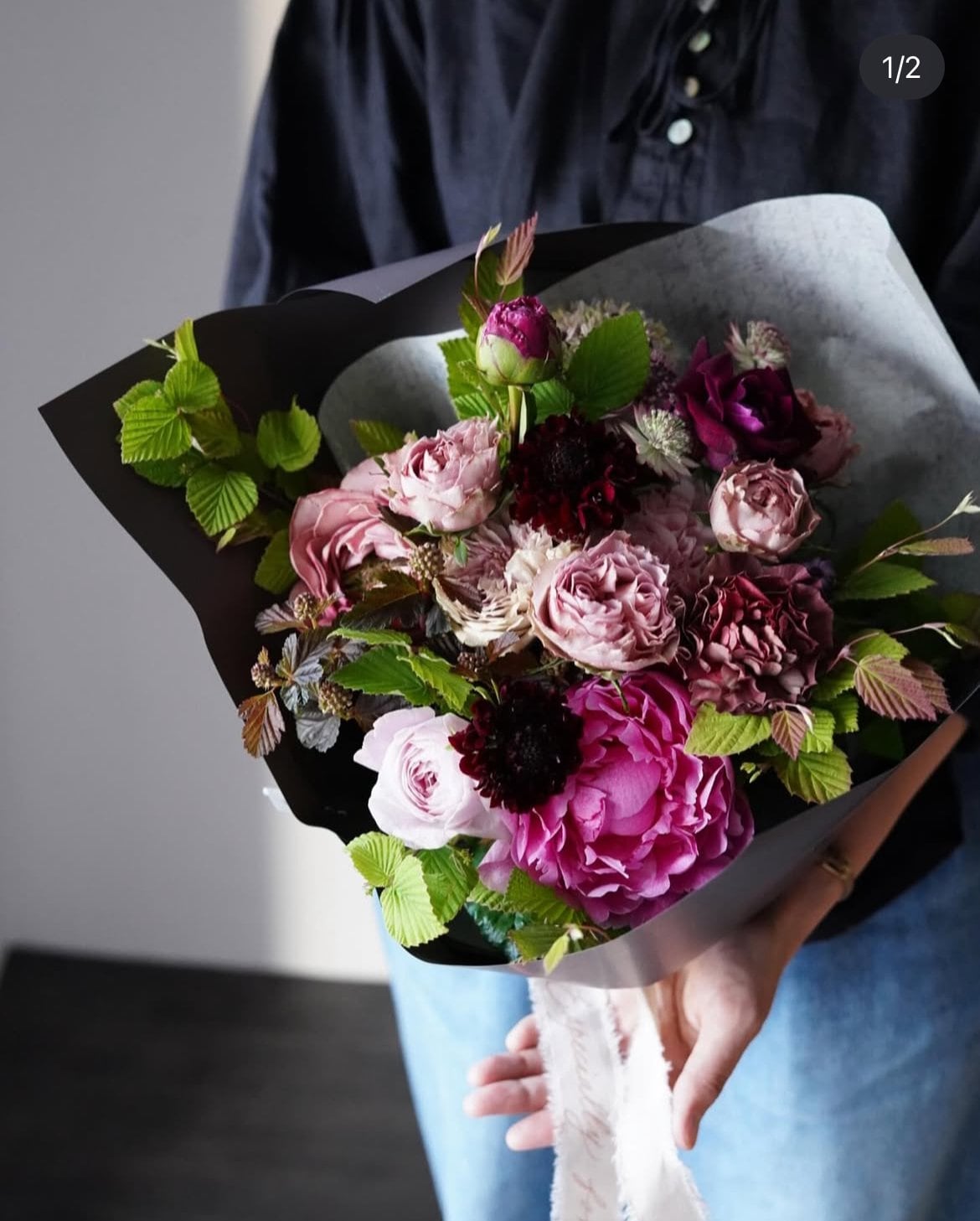 お花は華やかに、ラッピングや花器はシックで大人っぽく素敵に。こだわりのローズや芍薬、ライラックなどで素敵に仕上げ致します